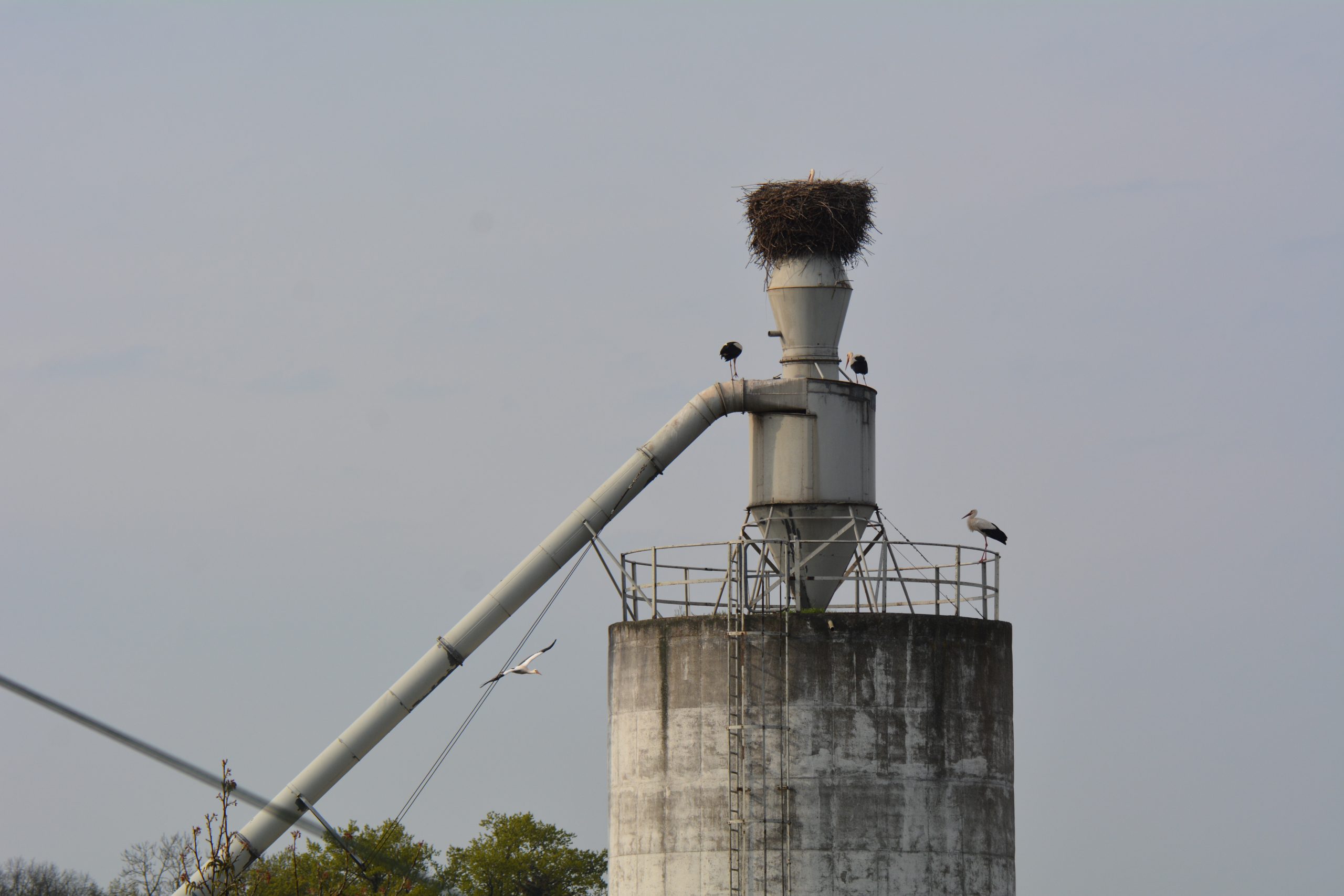 Zuckerfabrik Wabern: Hier hat im vergangenen Jahr ein wohl noch recht unerfahrenes Paar begonnen zu bauen, der Horst ist seit dem 04. März mit zwei unberingten Störchen belegt.