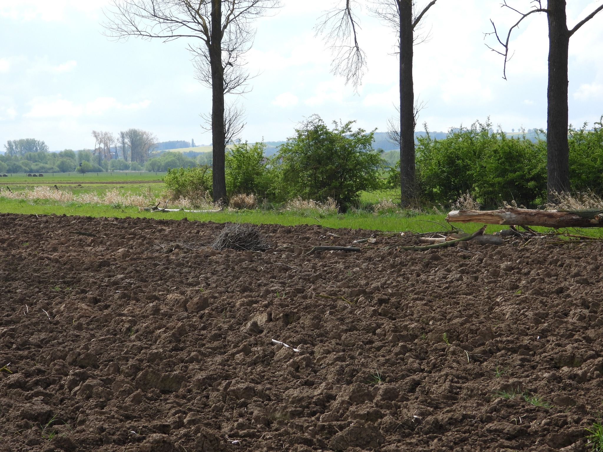 Das Storchenpaar stand am 18. April noch irritiert herum, sammelte wohl Kraft für einen Neubau, der ganz in der Nähe auf dem nächsten Baum errichtet wurde. Zum Glück nicht morsch, allerdings eine Frage der Zeit denn die Pappeln stehen am Entwässerungsgraben. Die Jahreszeit hilft ihnen hoffentlich dabei keinen weiteren Verlust zu erleiden.