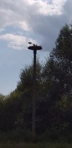 Dieser Storchenhorst wurde ca. 2010 aufgestellt am Ortsausgang von Schlierbach. 2024 wurden die Storchenfreunde dann endlich belohnt mit einer erfolgreichen Storchenbrut, 2 Küken wurden flügge.