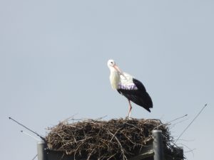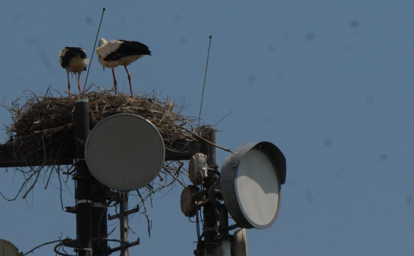 Doch weitere Probleme tauchen bereits auf, leider ist die Wahl des vom Weißstorch gewählten Standorts für seinen Storchenhorst oft nicht kompatibel mit unseren Vorstellungen von der Nutzung. Der oberste Bereich des Sendemastes ist für Erweiterungen wichtiger Richtfunkantennen vorgesehen, der Horst muss also umgesetzt werden. Dies geschieht natürlich in Abstimmung mit allen zuständigen Stellen. Ein geeigneter Standort wurde dafür bereits gefunden.
